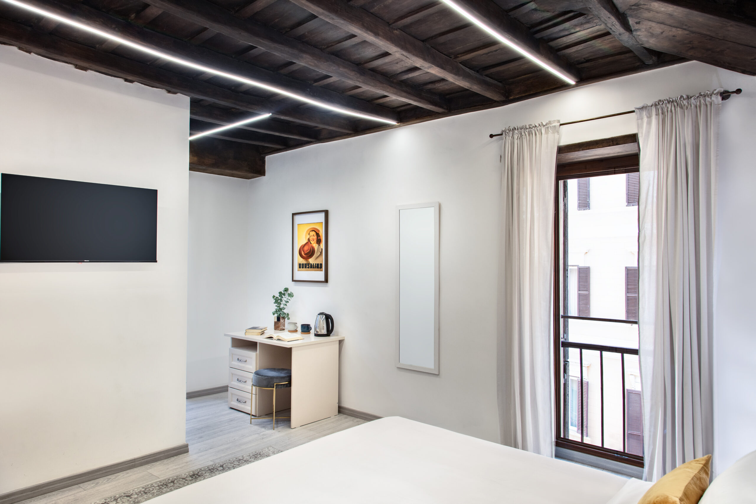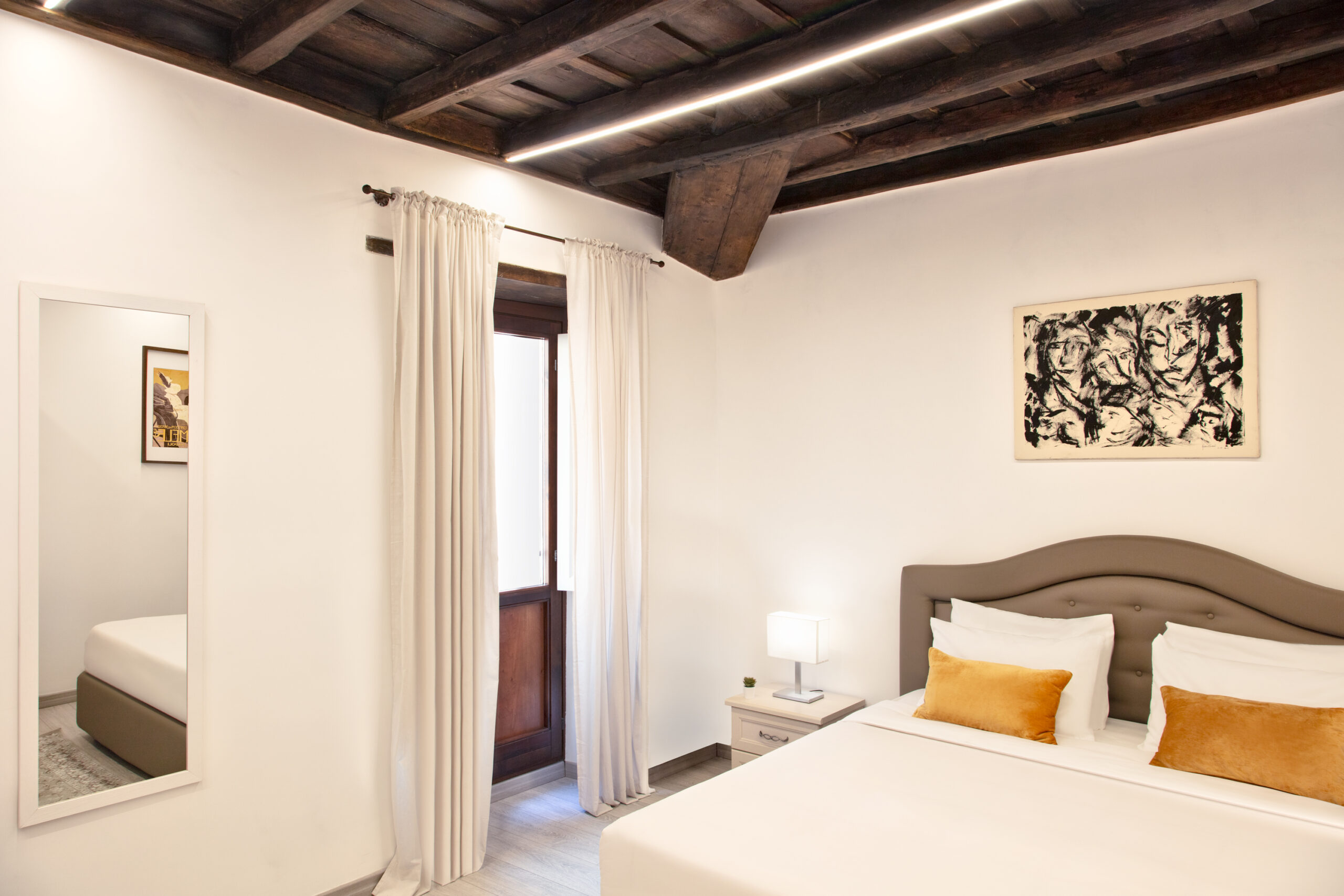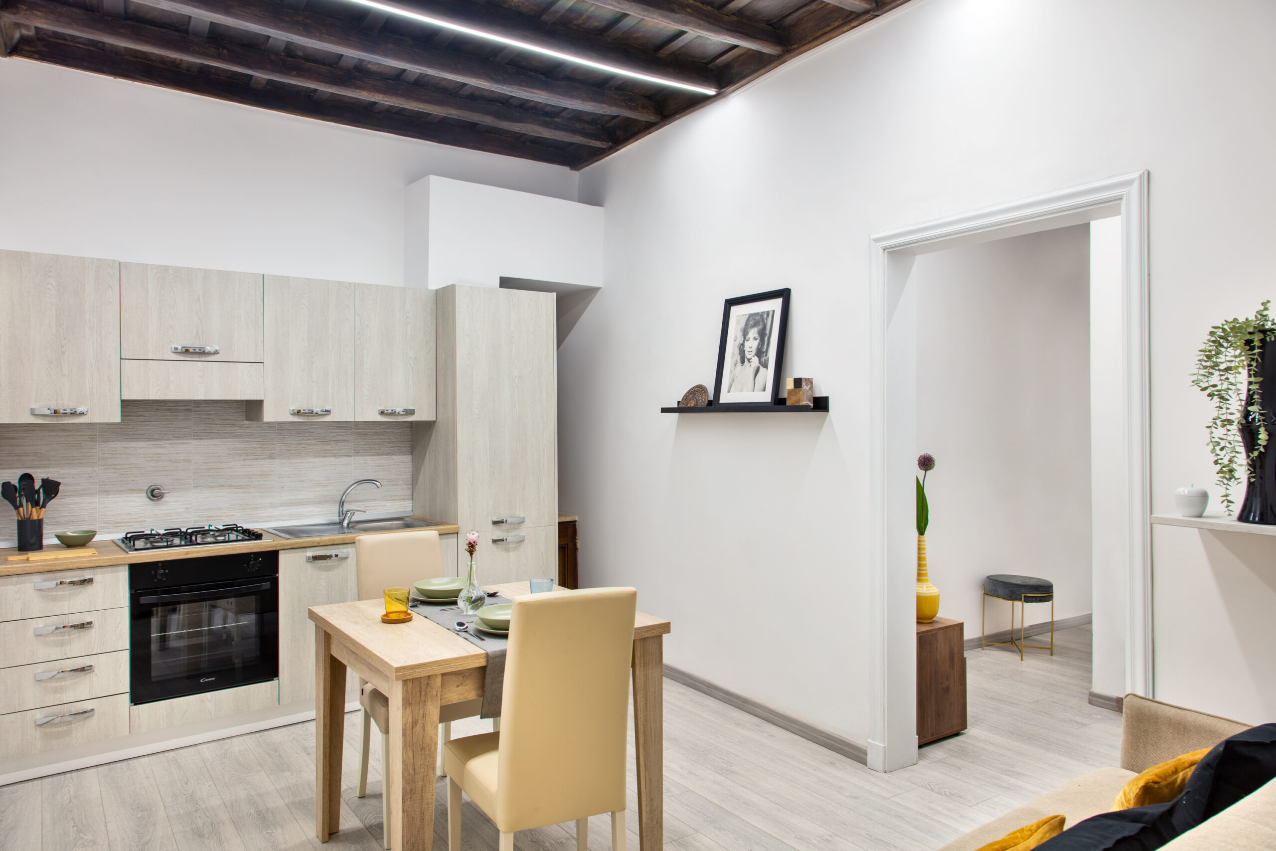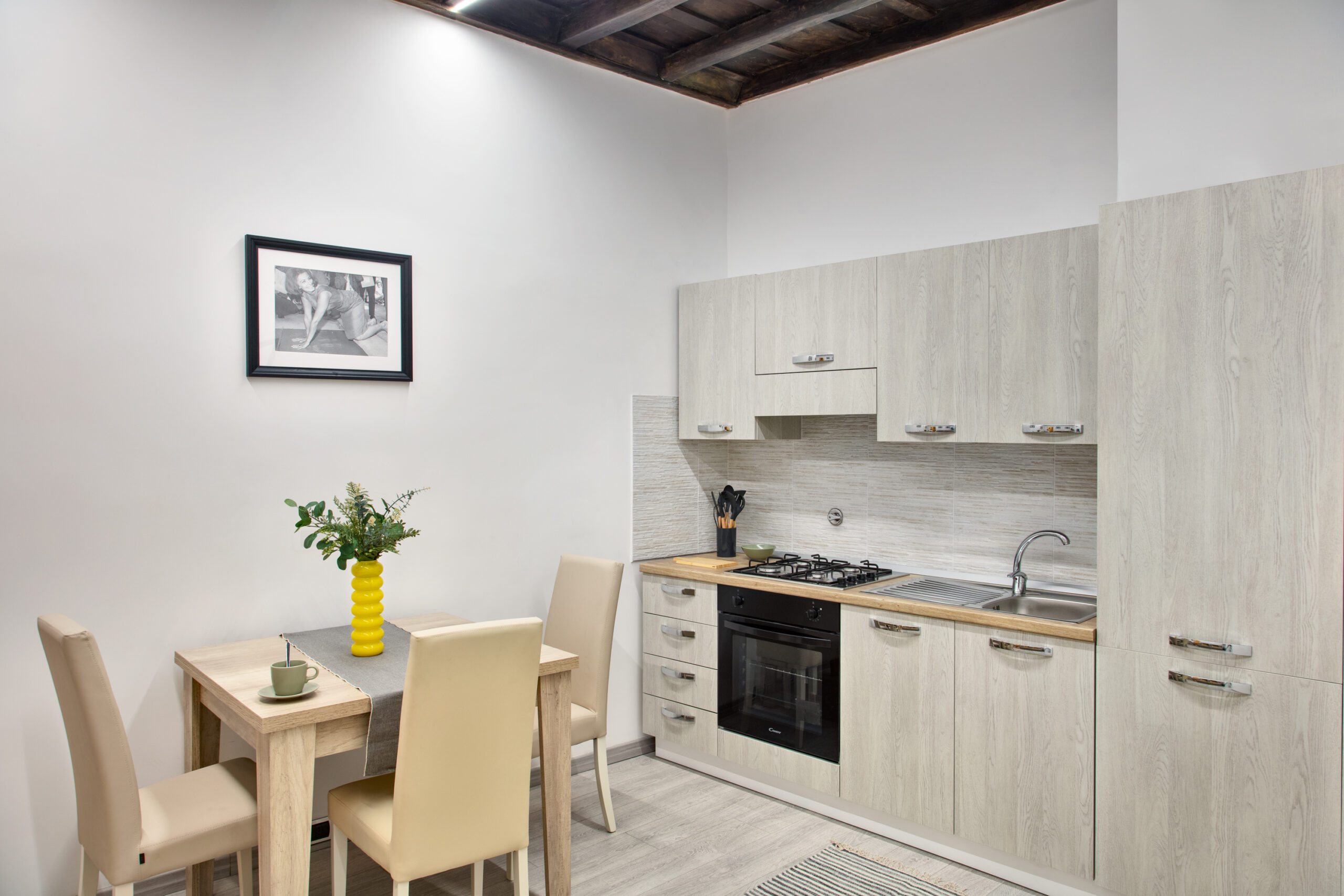 Scegliere un alloggio turistico con cucina attrezzata vicino Piazza di Spagna significa poter organizzare la giornata senza vincoli. In entrambe le soluzioni trovi una zona living con cucina completa di frigorifero, forno a induzione, microonde, macchina del caffè, bollitore, stoviglie e utensili. Gli spazi sono pensati per cucinare in modo pratico, fare colazione con calma o cenare in compagnia. Tavolo, sedie e area relax rendono l’ambiente funzionale e adatto sia a coppie che a famiglie.